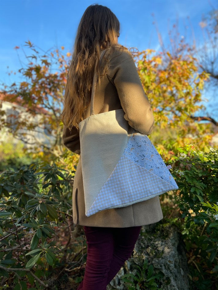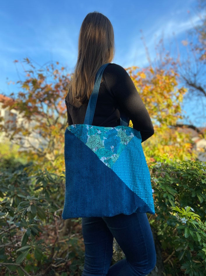 O'my bag est un tote-bag mi-velours, mi-coton, doté d'un bouton aimanté, entièrement doublé pour plus de solidité et de tenue.